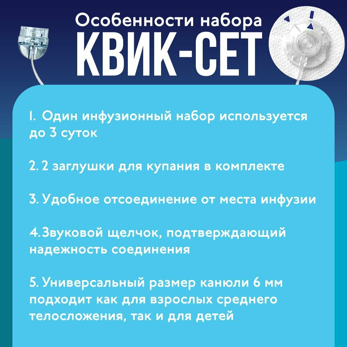 - Простота использования с устройством для автоматической установки канюли, что делает процесс установки доступным даже для новичков.