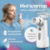 меш небулайзер 1 шт; док станция 1 шт; чаша для лекарства 1 шт; распылительный блок 2 шт; большая маска ингаляционная 1 шт; малая маска ингаляционная 1 шт; загубник 1 шт; руководство по эксплуатации 1 шт; чехол для хранения 1 шт; кабель Micro USB 1 шт.