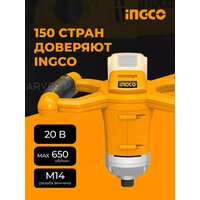 Купить INGCO Миксер строительный электрический аккумуляторный MXLI2001 дрель/для бетона, без АКБ и ЗУ, регулировка оборотов 20В с доставкой по всей России.