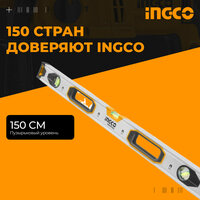 Строительный алюминиевый уровень магнитный INGCO HSL38150M INDUSTRIAL 150 см оснащен 3 глазками, удобный в применении измерительный инструмент для проверки правильности вертикали или горизонтали.