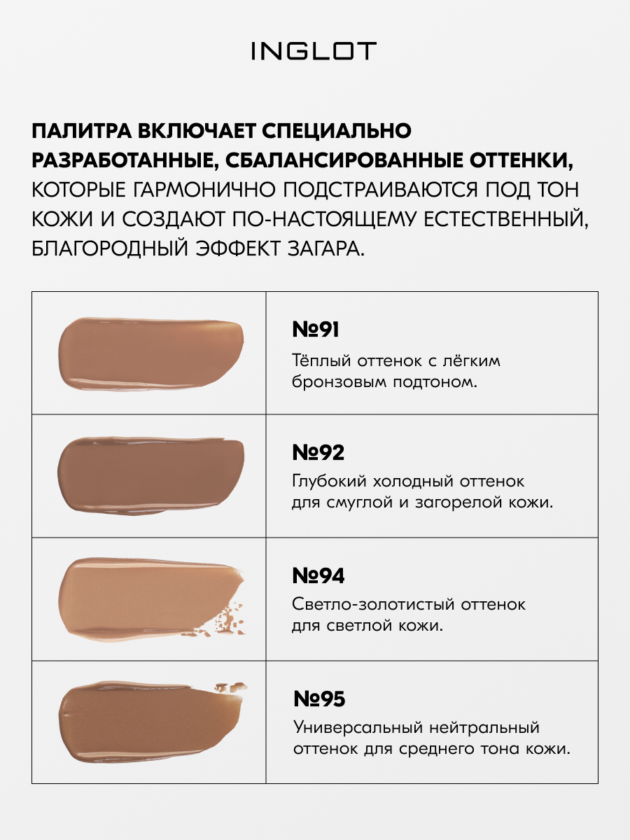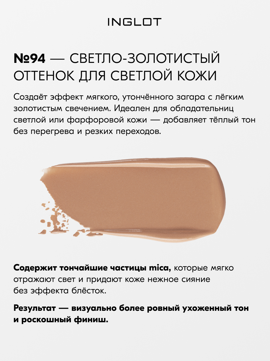 INGLOT бронзер AMC 100 мл, жидкие колготки, натуральный загар, стойкий оттеночный лосьон для тела и лица №94: сравнение цен, характеристики, фото, актуальное наличие и цены.