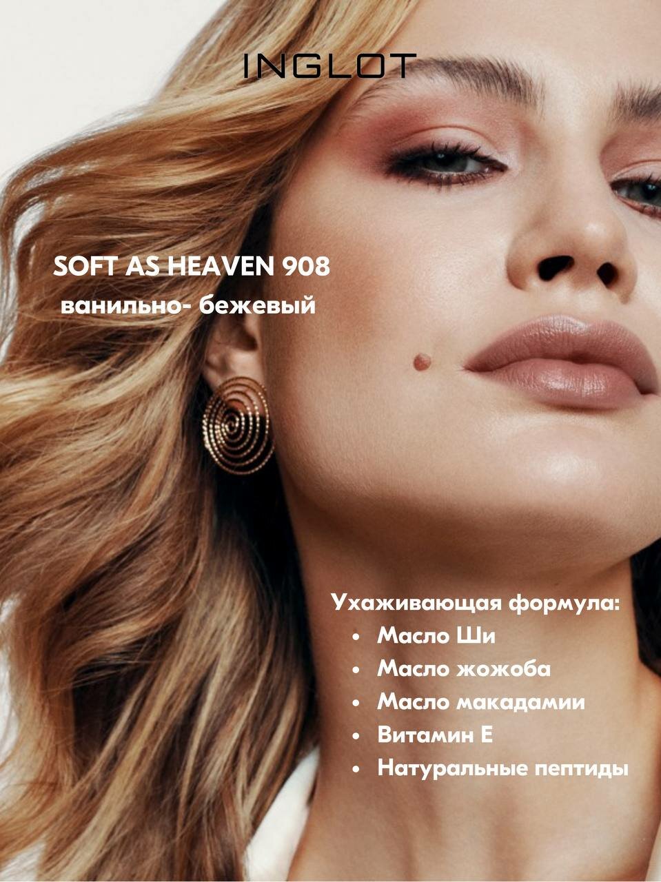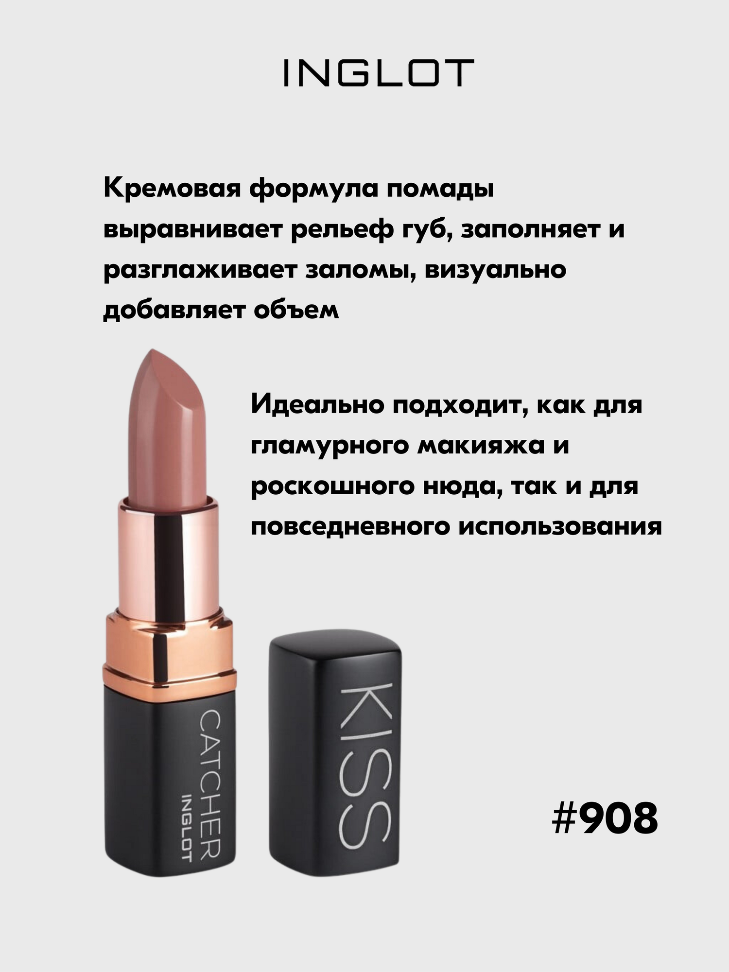 Купить INGLOT Kiss Catcher №908 SOFT AS HEAVEN — увлажняющая помада с маслом ши и витамином E, придает обьем, кремовая, 4,5 г с доставкой по всей России.