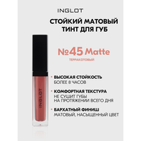 Тинт для губ INGLOT HD Lip Tint Matte №45, матовый стойкий, бархатный финиш, не сушит, насыщенный цвет 5,5 мл: сравнение цен, характеристики, фото, актуальное наличие и цены.