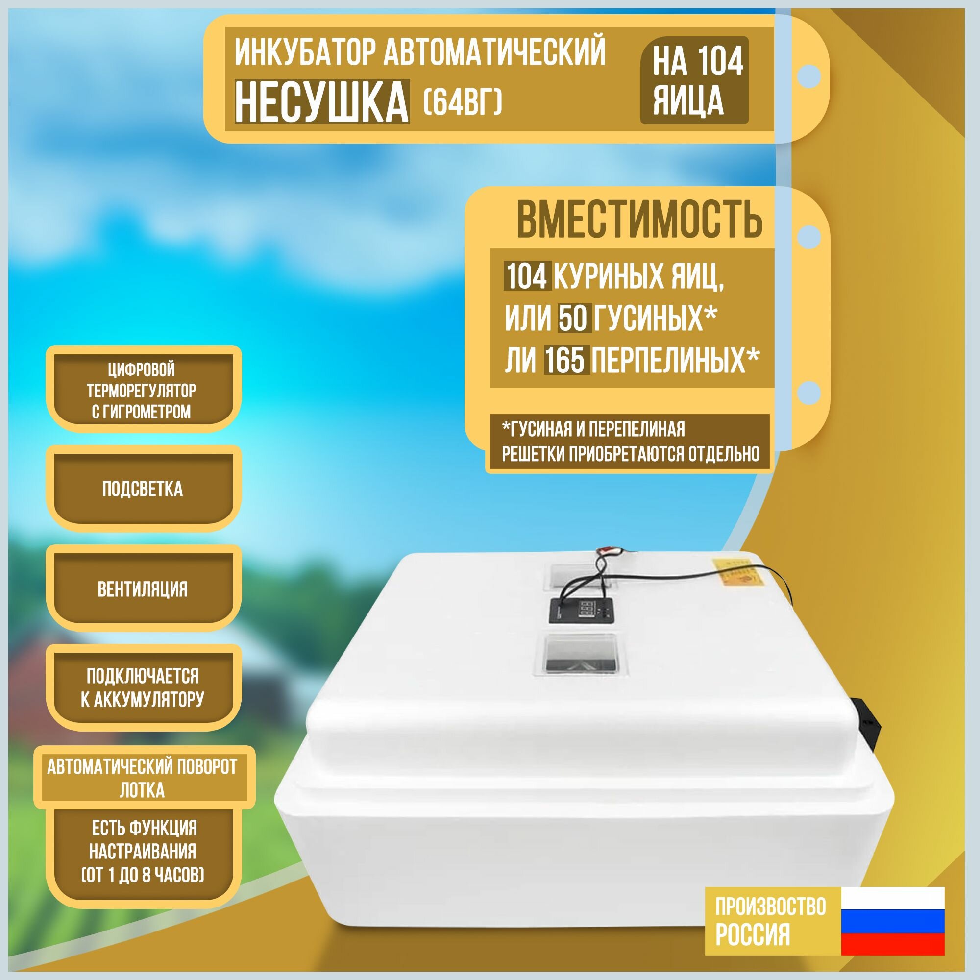 Инкубатор автоматический Несушка на 104 яйца с вентилятором и гигрометром (64вг): сравнение цен, характеристики, фото, актуальное наличие и цены.