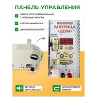 автоматическое переключение на аварийное питание, автоматическое поддержание влажности, автоповорот лотков, автоподача воды в камеру , автоподдержание заданной температуры