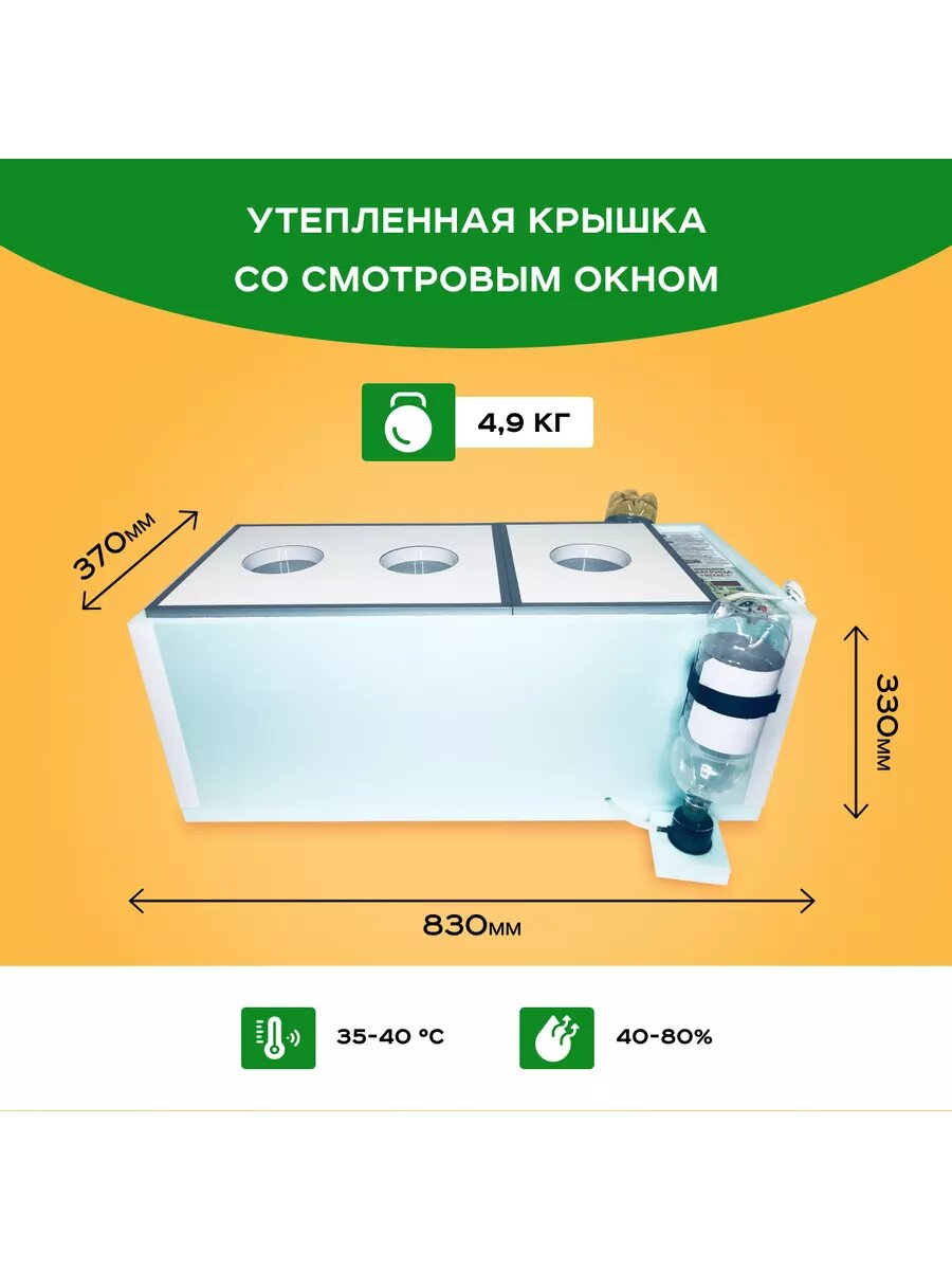 | Особенности | автоматическое переключение на аварийное питание, автоматическое поддержание влажности, автоповорот лотков, автоподдержание заданной температуры |