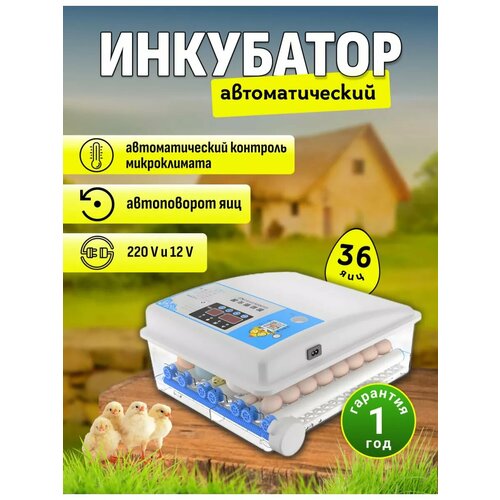 Полностью автоматический инкубатор на 36 яиц с овоскопом и автопереворотом яиц. Так же предусмотрена автоматическая подача воды. Инкубатор действительно просто в использование. При правильной эксплуатации прослужит десятки лет. Универсальный лоток для выведения различных типов яиц таких как перепелки, куриц, гусей, уток и многих других. Прибор поставляется со специальными лотками типа roller, которые легко подстраиваются под закладку яиц любой величины: куриных, гусиных, утиных, перепелиных и др. Яйца закладываются не вертикально, а горизонтально. Устройство оснащено теном, вентилятором, а также датчиками контроля (термометром и гигрометром), поэтому оно самостоятельно поддерживает заданные параметры микроклимата, ( температуру и влажность ) Инкубатор оснащен овоскопом. Может работать как от розетки 220v так и от аккумулятора (12v)