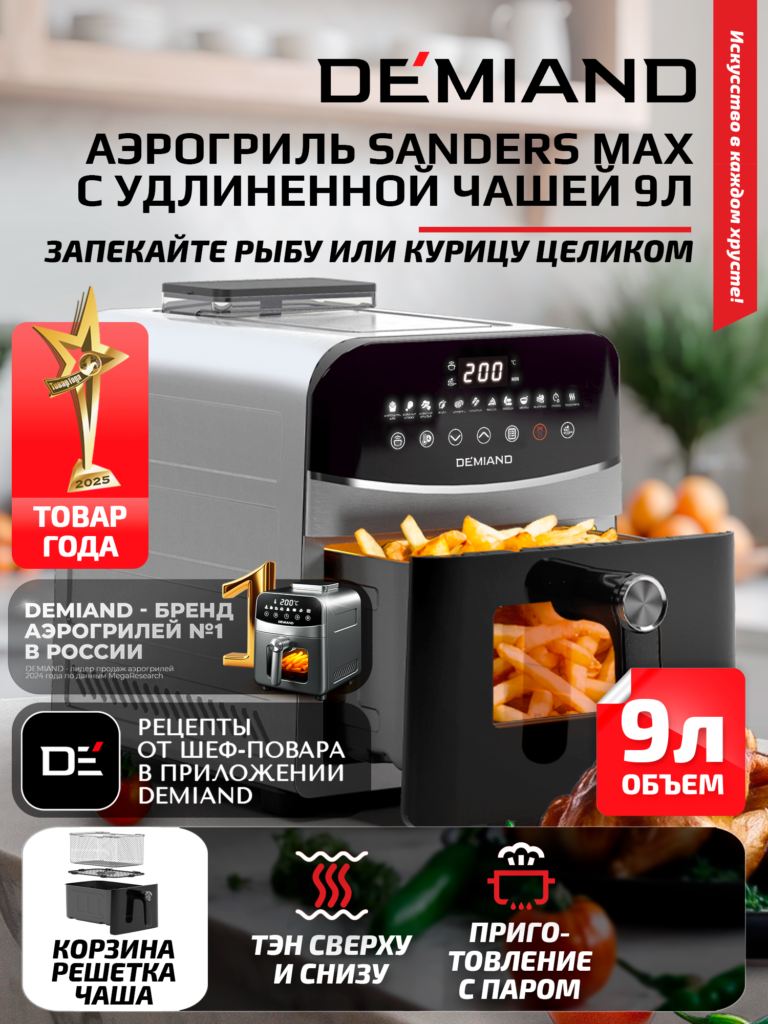 Инновационный аэрогриль DEMIAND SANDERS MAX с технологией приготовления на Пару и горячим обдувом воздуха на 360, углубленная чаша на 9 литров, 12 программ, многофункциональный. металл: сравнение цен, характеристики, фото, актуальное наличие и цены.