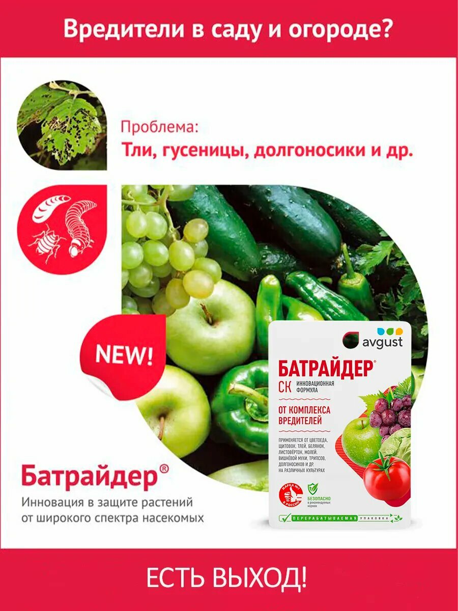 Инновационный универсальный препарат Батрайдер Август от комплекса вредителей, флакон 50 мл: сравнение цен, характеристики, фото, актуальное наличие и цены.