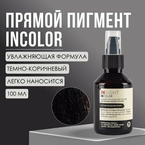 Прямой пигмент темно-коричневый Insight Professional DARK BROWN - это профессиональное оттеночное средство для натуральных, окрашенных волос, которое используется для нейтрализации нежелательных оттенков и для тонирования волос без поднятия натуральной базы. Объем продукта составляет 100 мл.