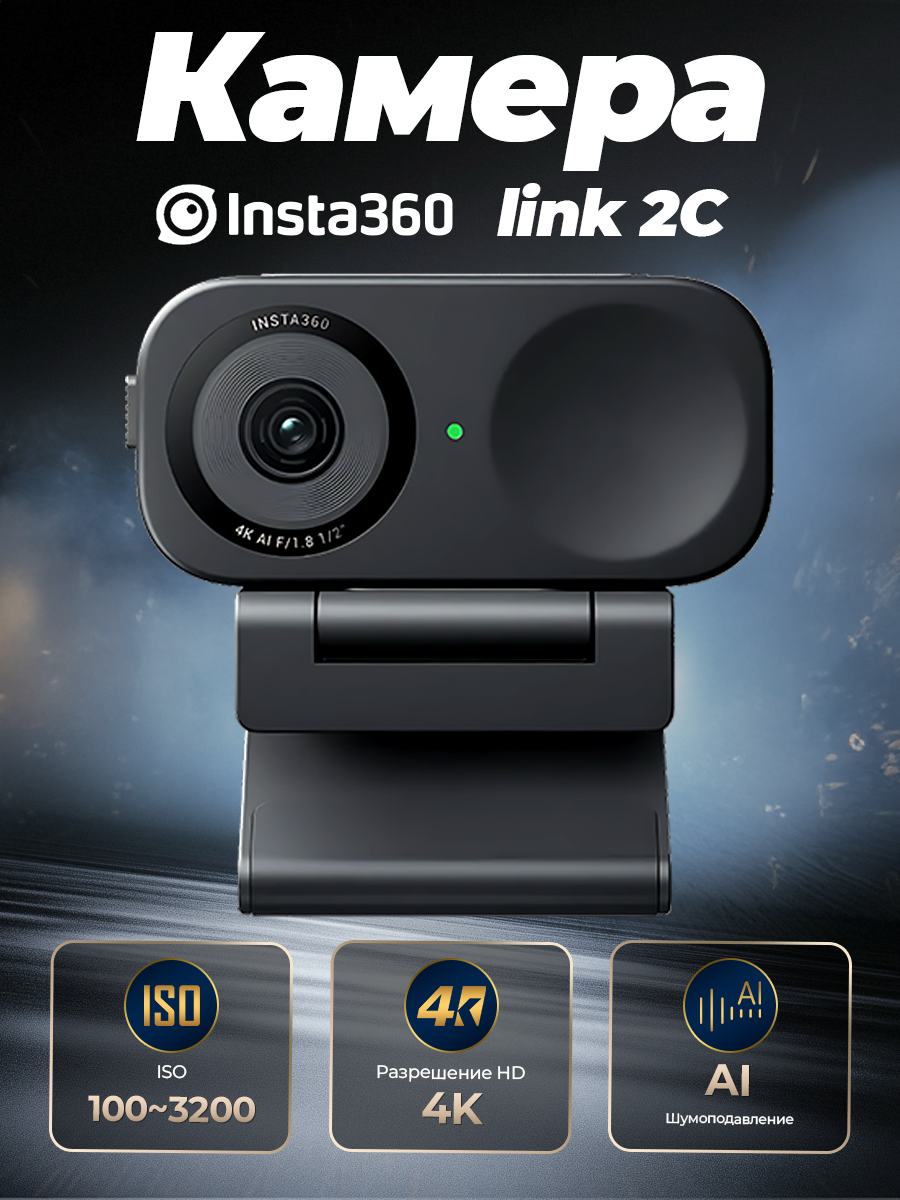 Insta360 Link 2C — 4K AI веб-камера для ПК/Mac, сенсор 1/2″, для потоковой передачи, видеозвонков, игр