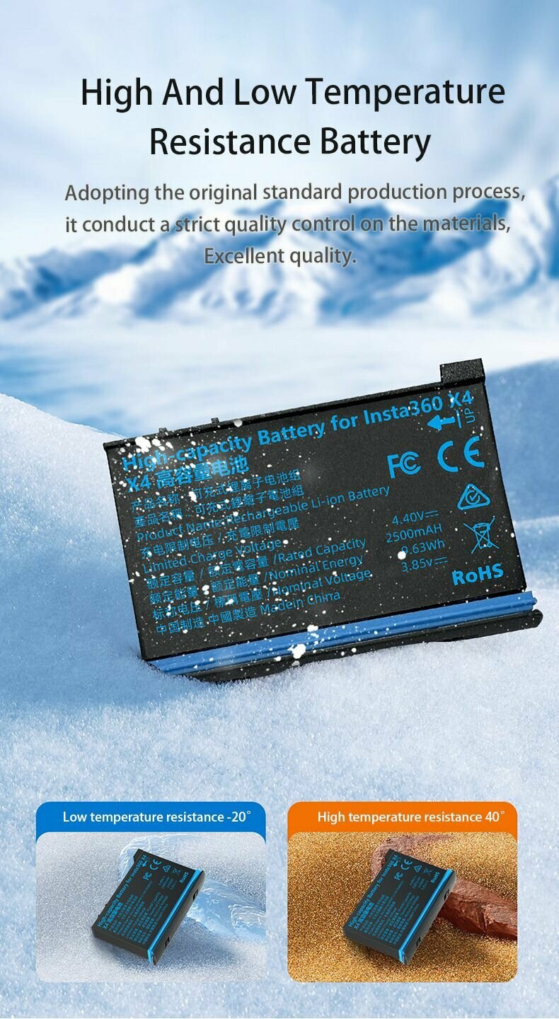 Купить Insta360 X4 аккумулятор 2500 мАч Power Accessories + кейс для аккумулятора и карты памяти с доставкой по всей России.