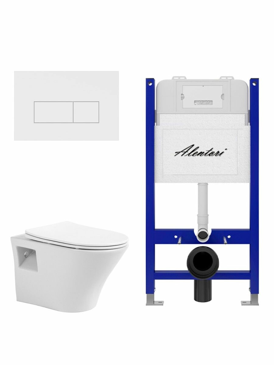 Купить Инсталляция для унитаза Alentori SISTEMA 50 AL. SIS33T с клавишей смыва CHIAVE H, белый + Подвесной безободковый унитаз AVIMANO Promotion с крышкой-сидением из дюропласта с функцией soft-close с доставкой по всей России.
