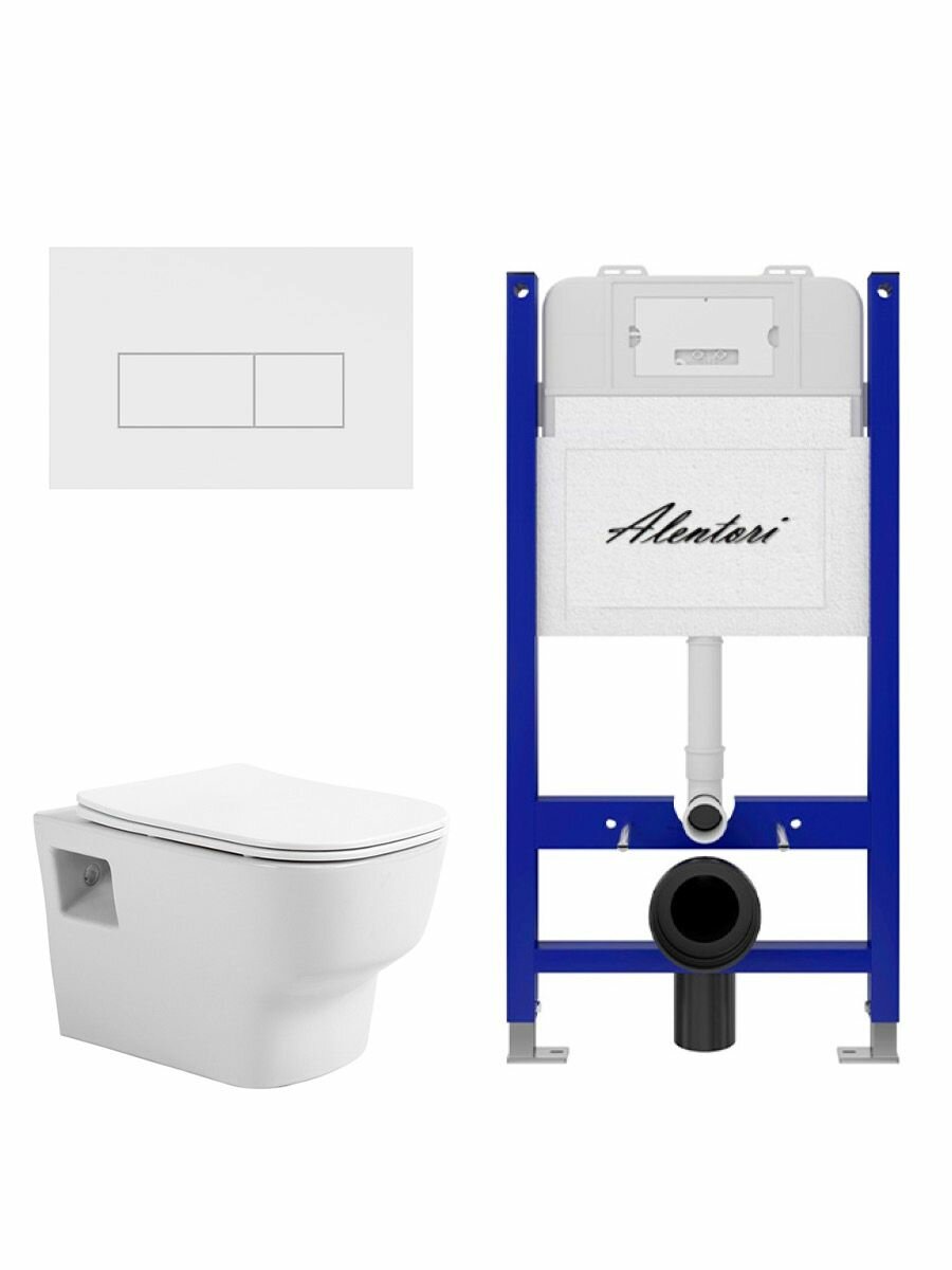 Инсталляция для унитаза Alentori SISTEMA 50 AL. SIS33T с клавишей смыва CHIAVE H, белый + Подвесной безободковый унитаз AVIMANO Tradition с крышкой-сидением из дюропласта с функцией soft-close: сравнение цен, характеристики, фото, актуальное наличие и цены.