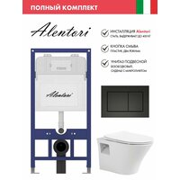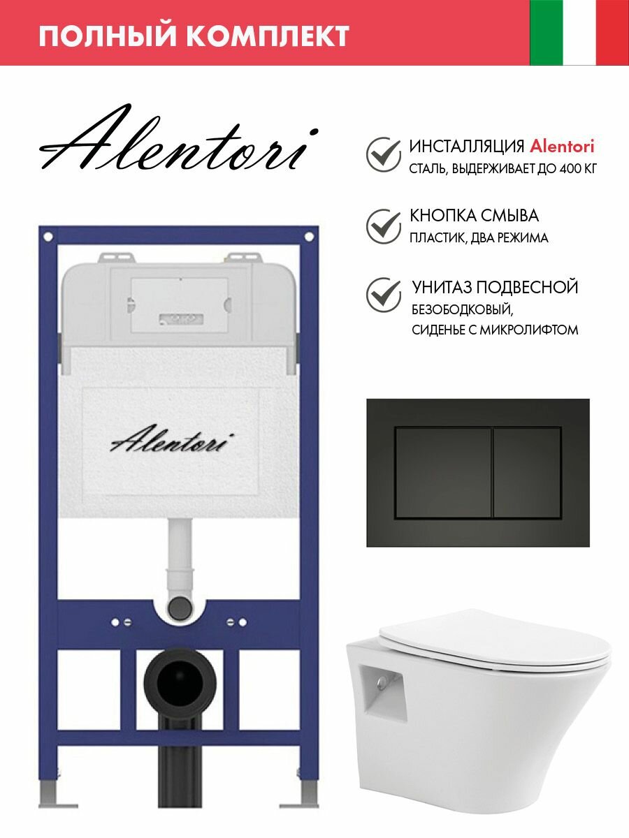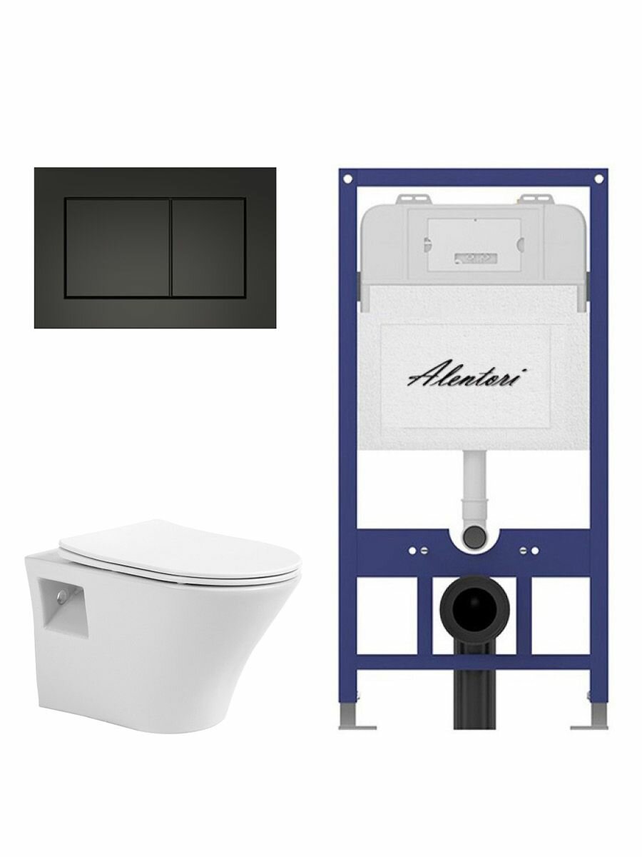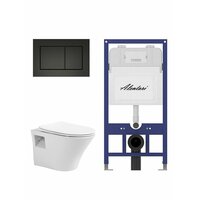 Купить Инсталляция для унитаза Alentori SISTEMA 52 AL. SIS11T с клавишей смыва CHIAVE A, черный + Подвесной безободковый унитаз AVIMANO Promotion с крышкой-сидением из дюропласта с функцией soft-close с доставкой по всей России.