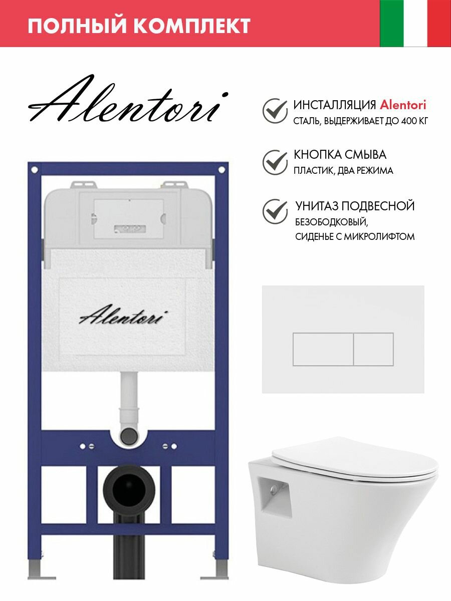 Купить Инсталляция для унитаза Alentori SISTEMA 52 AL. SIS11T с клавишей смыва CHIAVE H, белый + Подвесной безободковый унитаз AVIMANO Promotion с крышкой с доставкой по всей России.