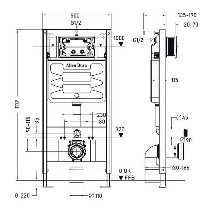 Инсталляция для унитаза Allen Brau Pneumatic 9.11100.20 с кнопкой 9.20A01.00: сравнение цен, характеристики, фото, актуальное наличие и цены.
