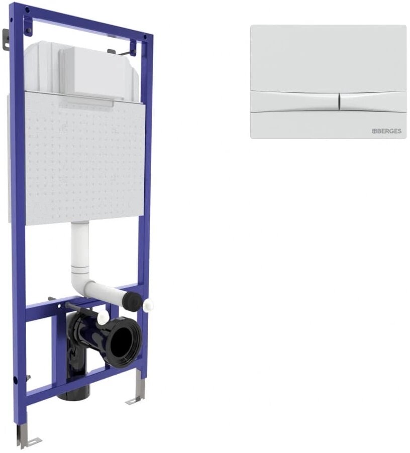 Инсталляция Berges Wasserhaus Novum 040250 для подвесного унитаза со смывным бачком и Белой клавишей смыва.