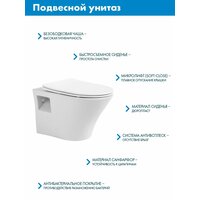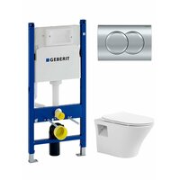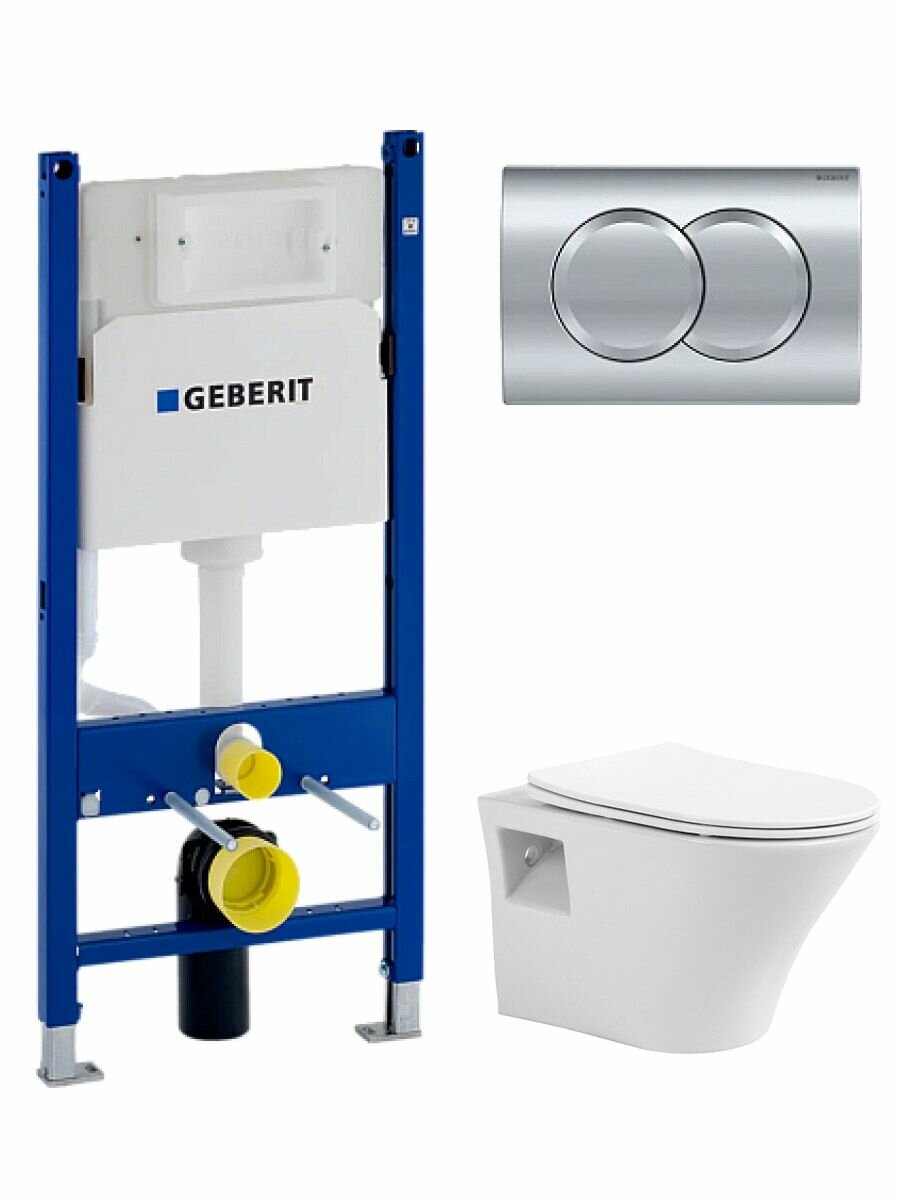 Купить Инсталляция для унитаза Geberit Duofix с смывной клавишей Delta01, Хром 458.149.21.1 + Подвесной безободковый унитаз AVIMANO Promotion с крышкой-сидением из дюропласта с функцией soft-close с доставкой по всей России.