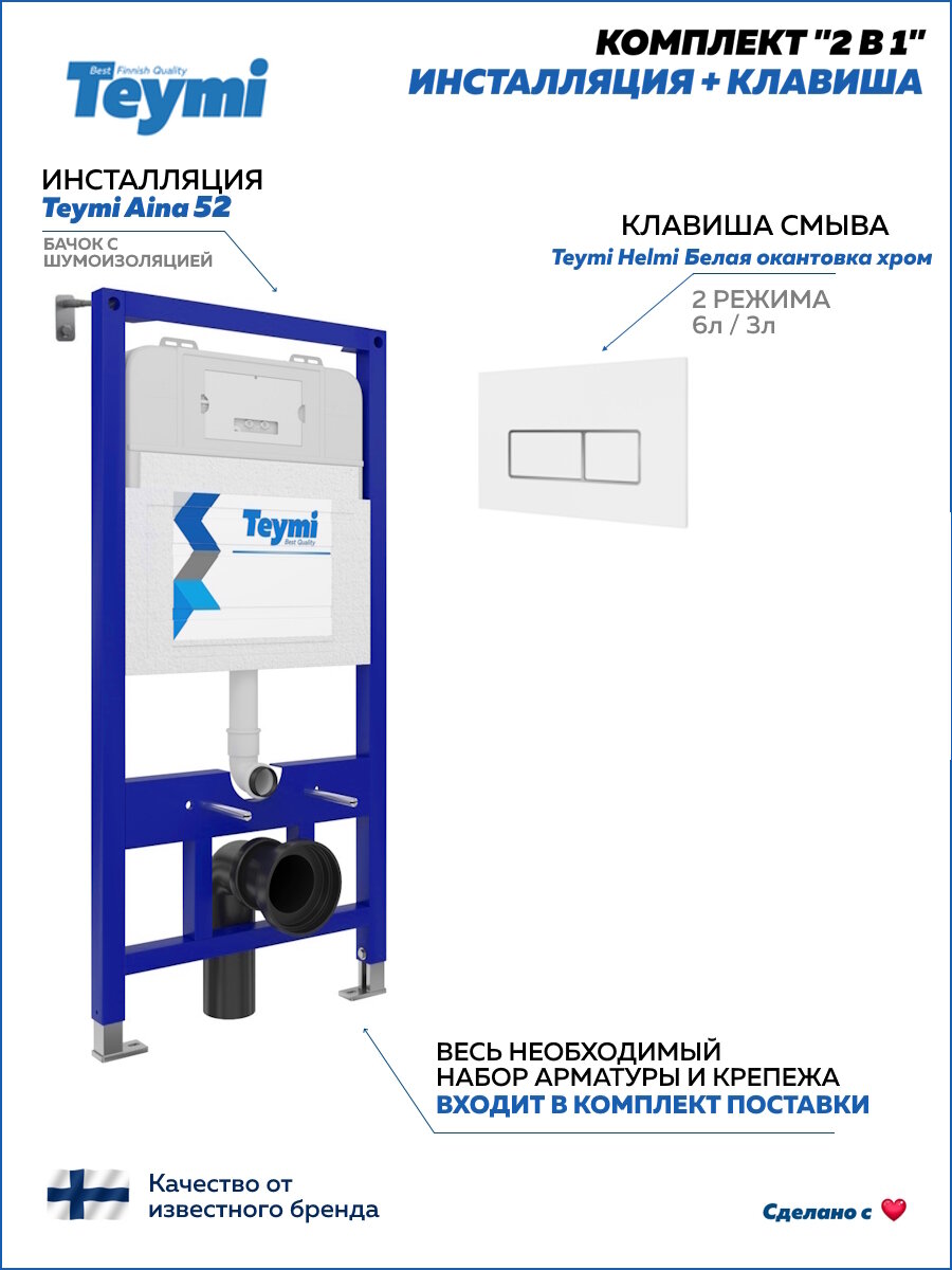 Купить Инсталляция для унитаза подвесного Teymi Aina 52 в комплекте с кнопкой белой окантовка хром F13239 с доставкой по всей России.