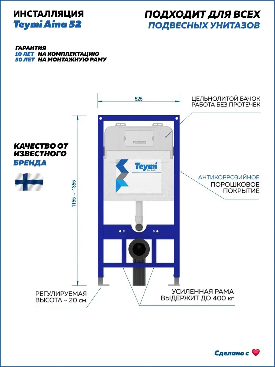 Купить Инсталляция для унитаза подвесного Teymi Aina 52 в комплекте с кнопкой черной матовой окантовка хром F13238 с доставкой по всей России.