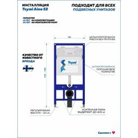 -- инсталляция TEYMI AINA 52 T70011 – мощная монтажная рама из стального профиля толщиной 1.5 мм увеличенной ширины 52,5 см с дополнительными вертикальными усиливающими стойками, что позволяет выдерживать нагрузки до 400 кг;