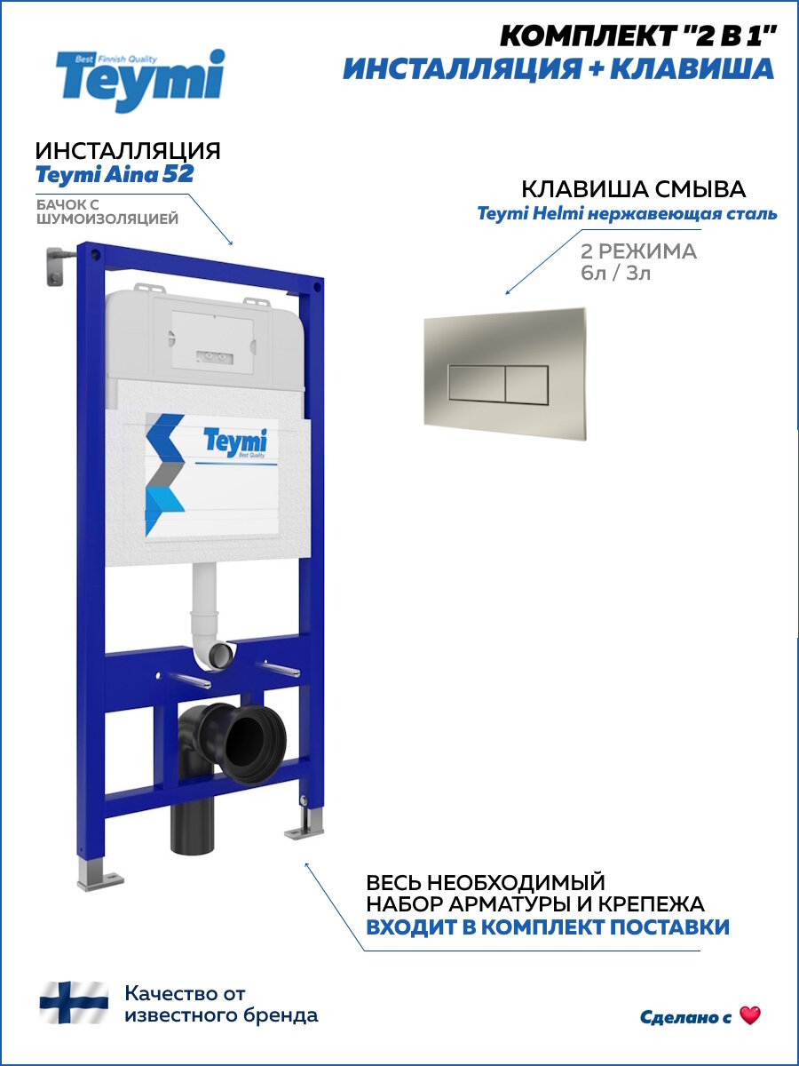 Купить Инсталляция для унитаза подвесного Teymi Aina 52 в комплекте с кнопкой из нержавеющей стали F13237 с доставкой по всей России.