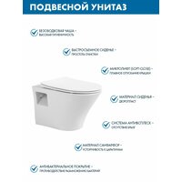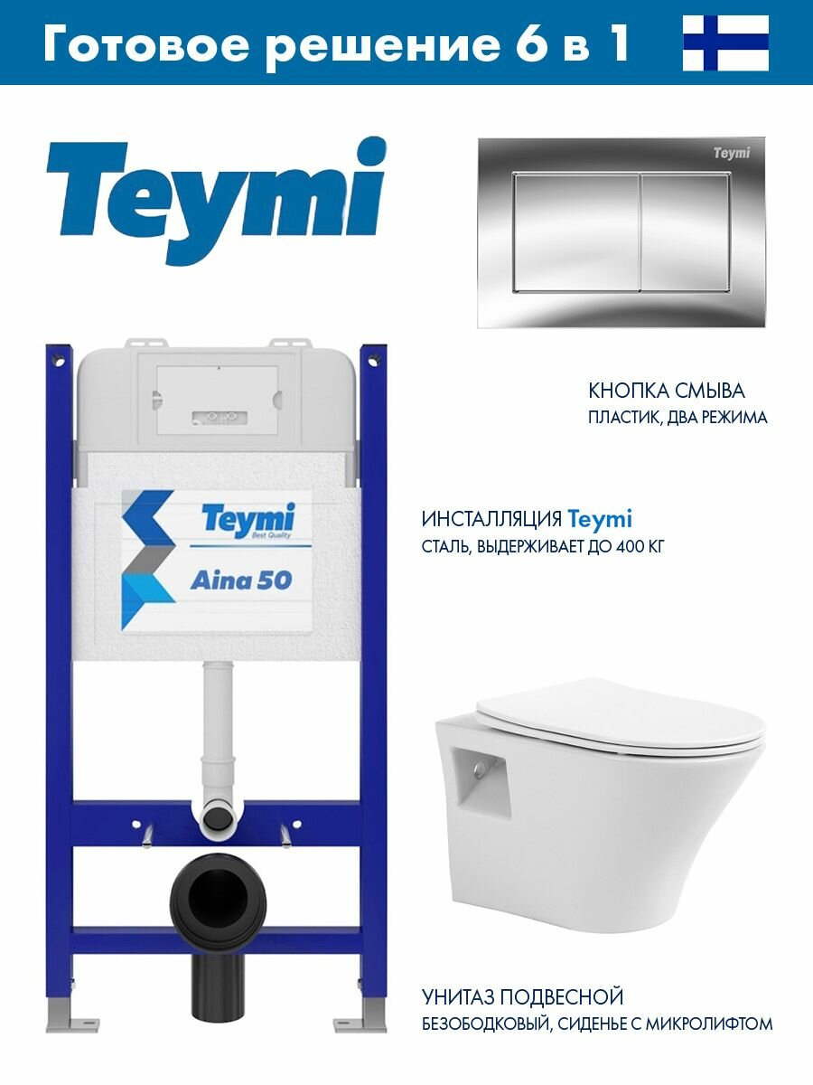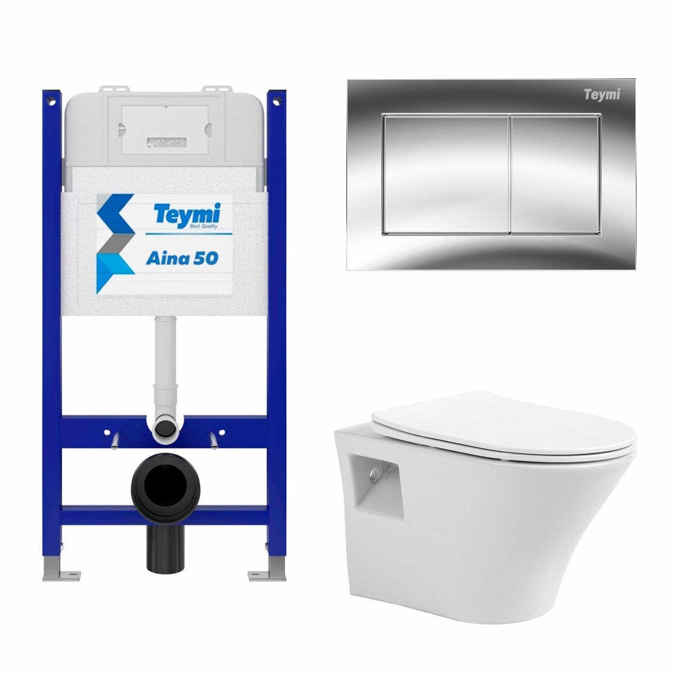 Купить Инсталляция для унитаза Teymi Aina 50, арт. T70033 с клавишей смыва Aina, хром T70012CH + Подвесной безободковый унитаз AVIMANO Promotion с крышкой-сидением из дюропласта с функцией soft-close с доставкой по всей России.
