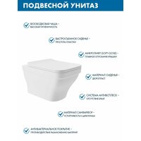 Инсталляция для унитаза Teymi Aina 50, T70033 с клавишей смыва Teymi Aina, хром T70012CH + Унитаз подвесной 520*370 безободковый, сиденье Soft-Close, белый матовый, форма квадрат с выступом: сравнение цен, характеристики, фото, актуальное наличие и цены.