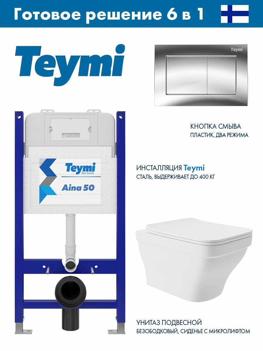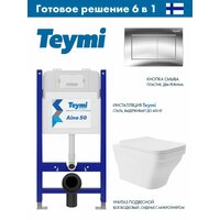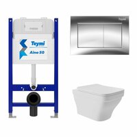 Купить Инсталляция для унитаза Teymi Aina 50, T70033 с клавишей смыва Teymi Aina, хром T70012CH + Унитаз подвесной 520*370 безободковый, сиденье Soft-Close, белый матовый, форма квадрат с выступом с доставкой по всей России.