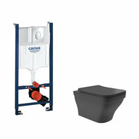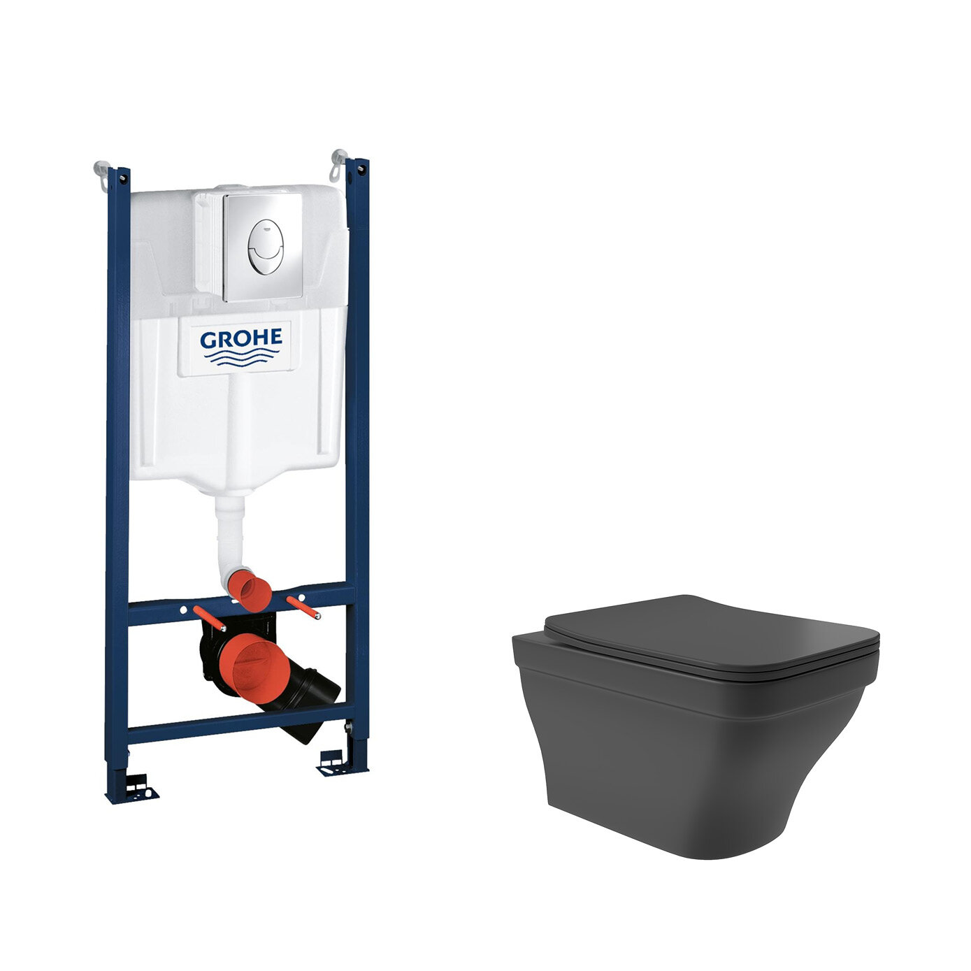 Купить Инсталляция GROHE Rapid SL для унитаза с панелью смыва, 3 режима, матовый хром + Унитаз подвесной 520*370 безободковый, сиденье Soft-Close, черный, форма квадрат с выступом с доставкой по всей России. Инсталляция GROHE Rapid SL для унитаза с панелью смыва, 3 режима, матовый хром + Унитаз подвесной 520*370 безободковый, сиденье Soft-Close, черный, форма квадрат с выступом: сравнение цен, характеристики, фото, актуальное наличие и цены.