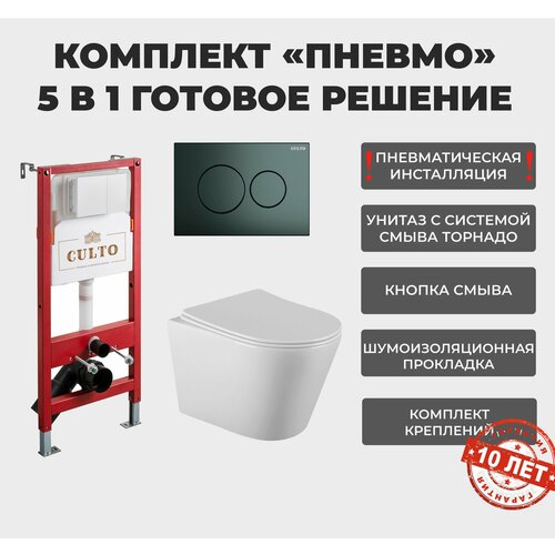 Купить Инсталляция пневматическая с подвесным унитазом CULTO MONET 2.0. Панель смыва GUN METALL (темно-серая). Улучшенная каскадная система смыва с доставкой по всей России.