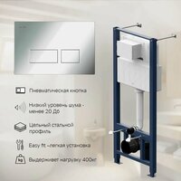 Унитаз подвесной с инсталляцией комплект укомплектован пневматической клавишей в цвете глянцевый хром (дизайн Jump S).