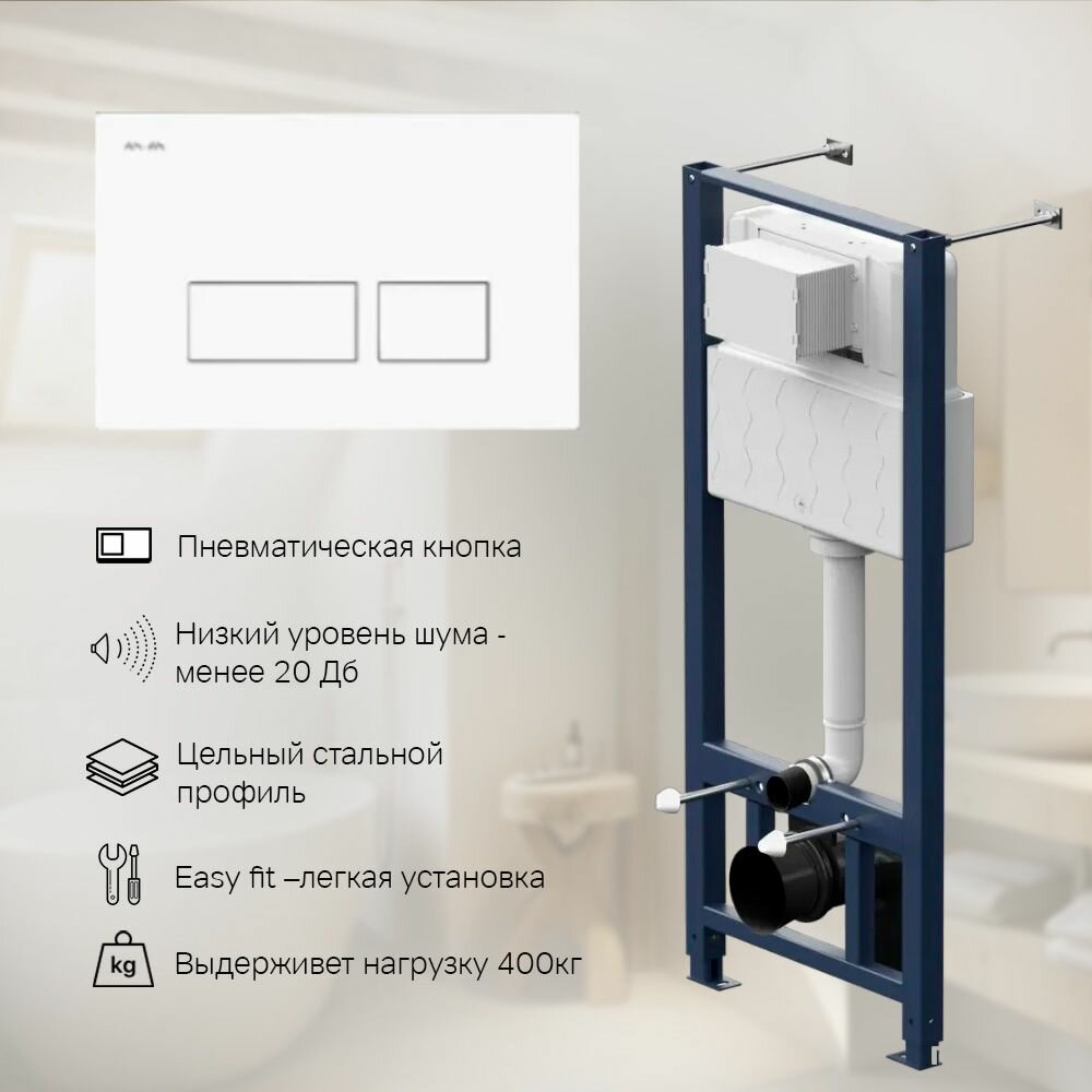 Унитаз подвесной с инсталляцией комплект укомплектован пневматической клавишей в цвете глянцевый белый (дизайн Jump S).