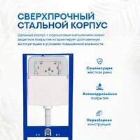 - 6 в 1 – данный комплект включает все необходимые элементы для монтажа: инсталляцию, унитаз, смывную кнопку, а также сопутствующие крепления и механизмы.