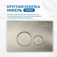 - Кнопка никель 303BN – элемент управления смывом, который придает комплекту изысканности и современный вид. Круглая форма кнопки делает ее удобной в использовании.