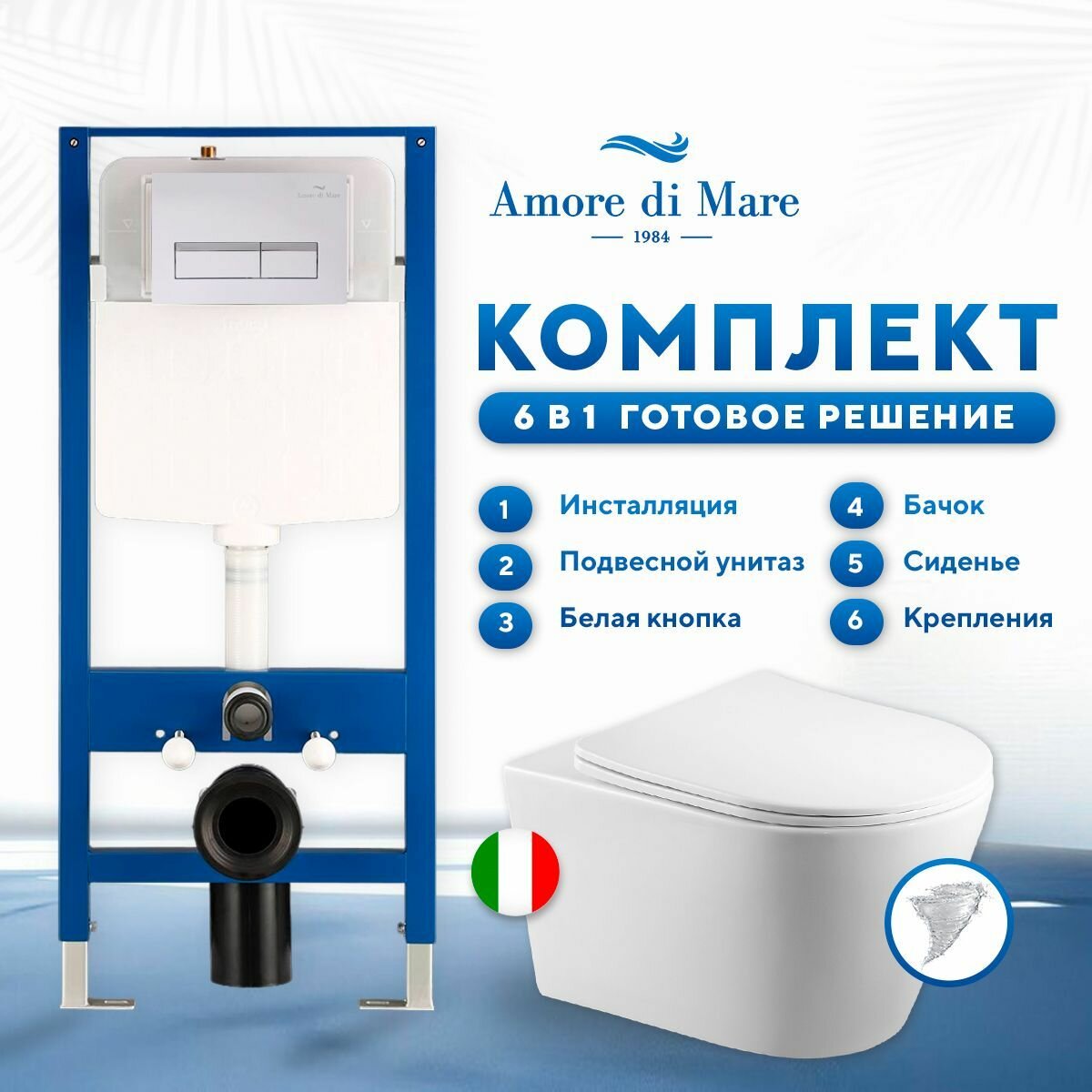 Комплект инсталляции Amore di Mare QuickFit 50114 с унитазом Elsa Tornado P312-T и белой квадратной кнопкой 404W — это универсальное решение для ванных комнат, сочетающее в себе качество, стиль и функциональность. Этот комплект предлагает все необходимое для установки, и включает следующие элементы: