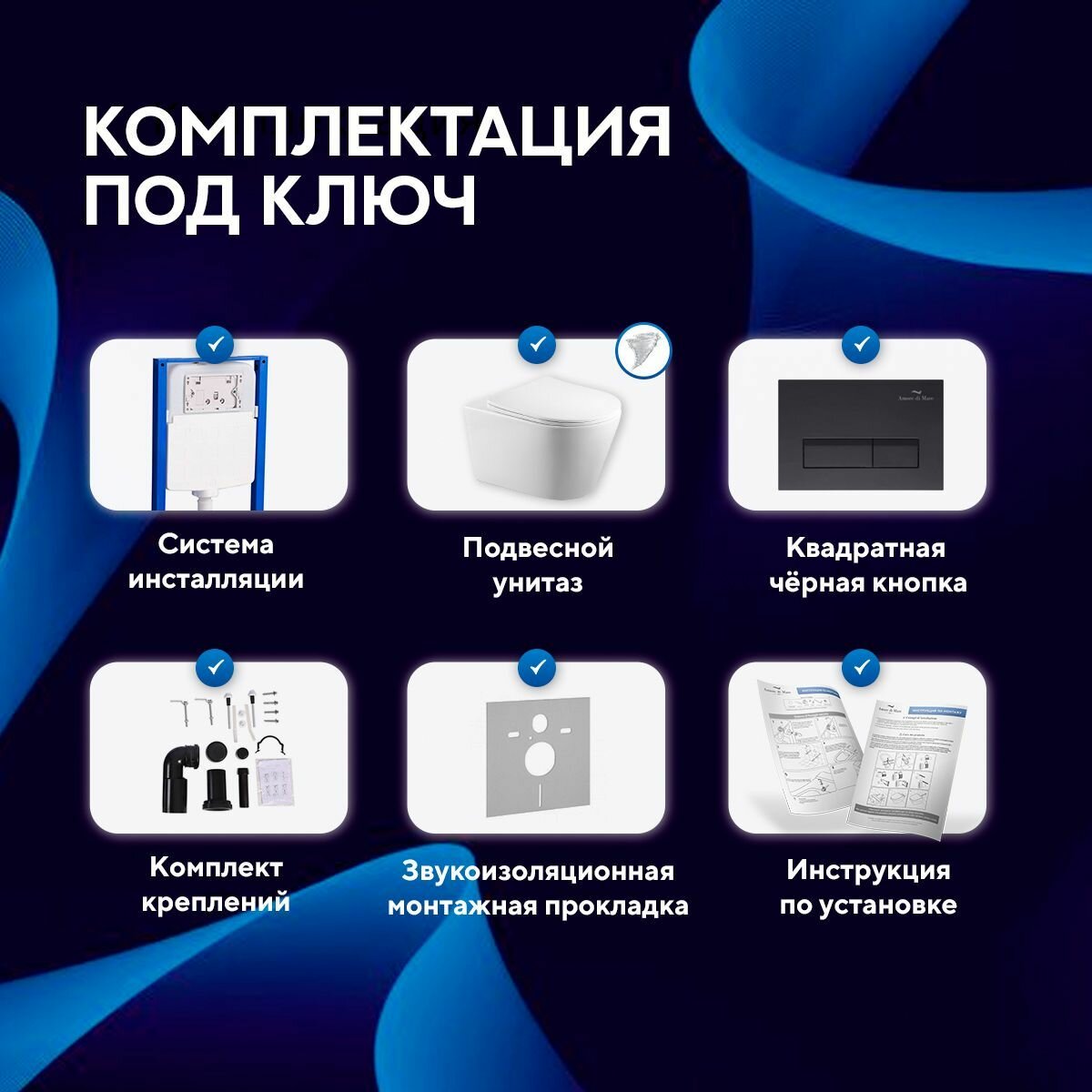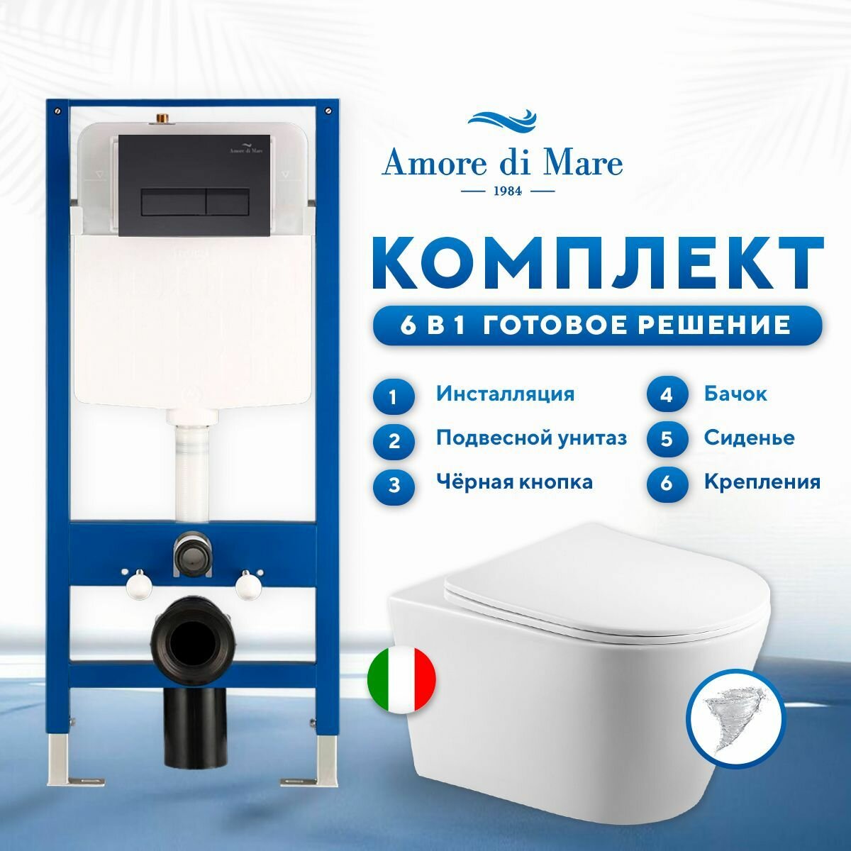 Комплект инсталляции Amore di Mare QuickFit 50114 с унитазом Elsa Tornado P312-T и черной квадратной кнопкой 404MB — это универсальное решение для ванных комнат, сочетающее в себе качество, стиль и функциональность. Этот комплект предлагает все необходимое для установки, и включает следующие элементы: