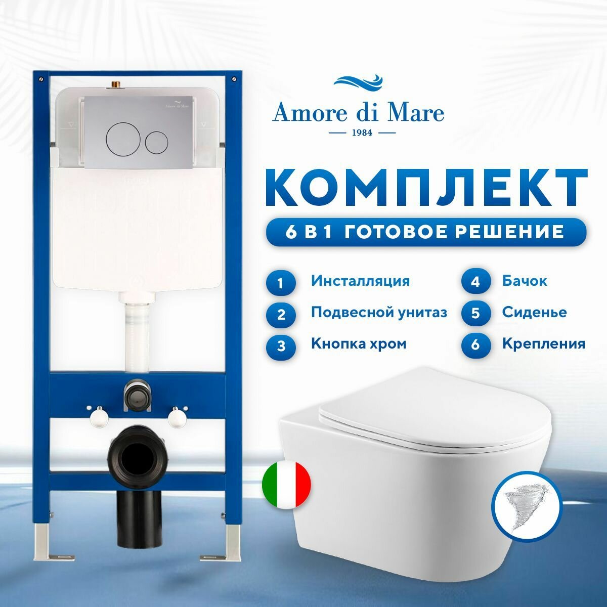 Комплект инсталляции Amore di Mare QuickFit 50114 с унитазом Elsa Tornado P312-T и круглой кнопкой хром 303CH — это универсальное решение для ванных комнат, сочетающее в себе качество, стиль и функциональность. Этот комплект предлагает все необходимое для установки, и включает следующие элементы: