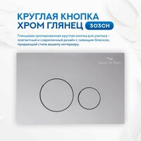 - Кнопка хром 303CH – элемент управления смывом, который придает комплекту изысканности и современный вид. Круглая форма кнопки делает ее удобной в использовании.