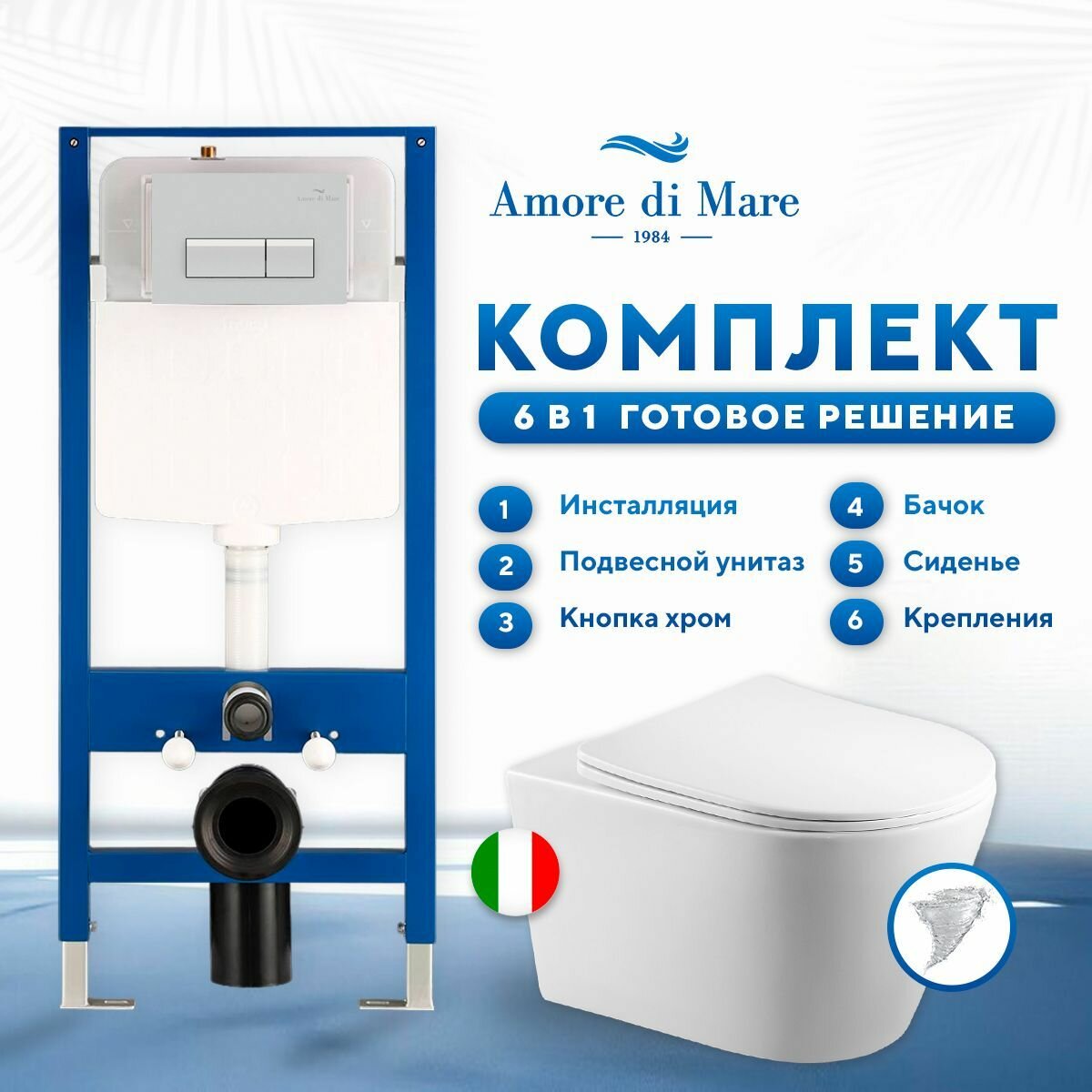 Комплект инсталляции Amore di Mare QuickFit 50114 с унитазом Elsa Tornado P312-T и квадратной кнопкой хром 404CH — это универсальное решение для ванных комнат, сочетающее в себе качество, стиль и функциональность. Этот комплект предлагает все необходимое для установки, и включает следующие элементы: