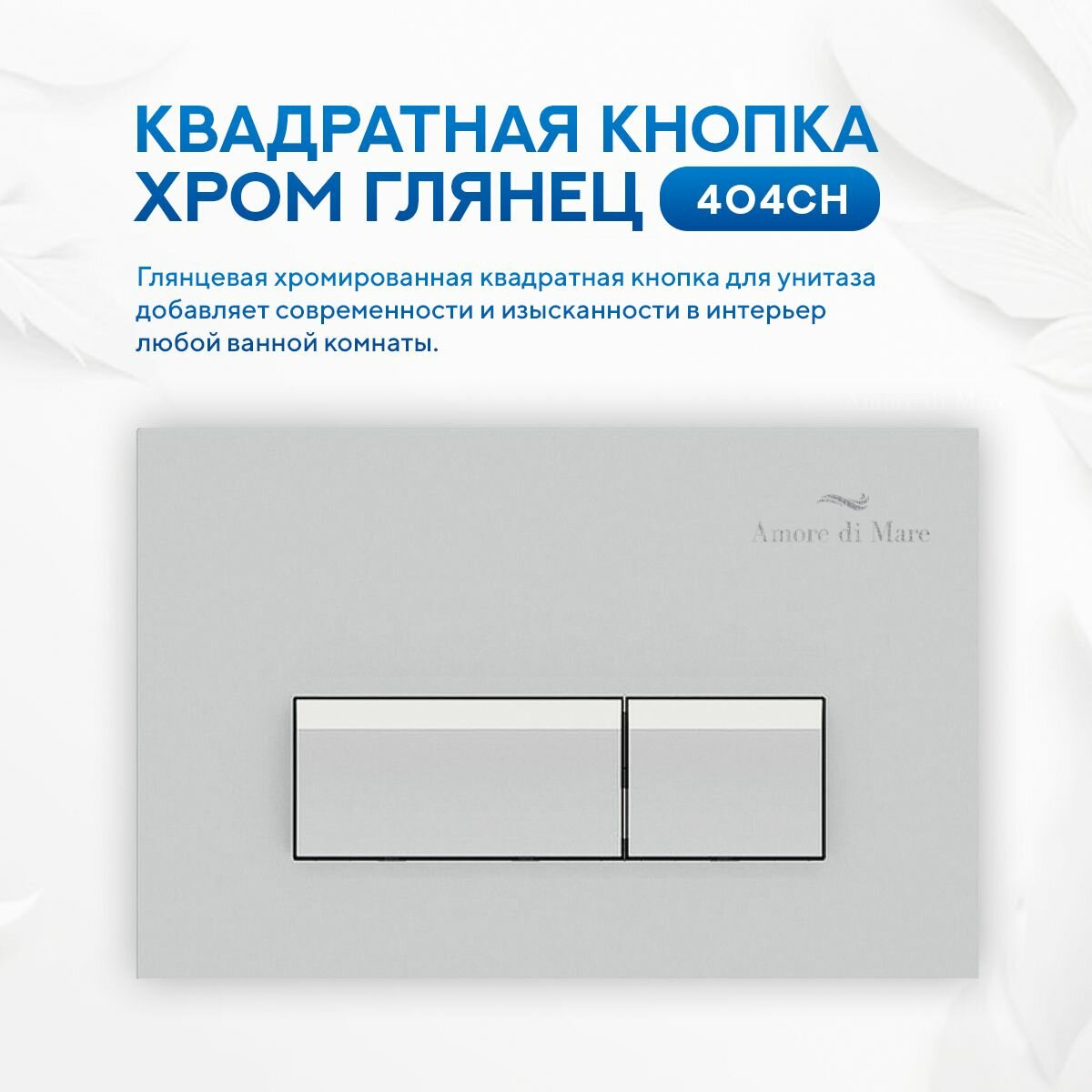 - Кнопка хром 404CH– элемент управления смывом, который придает комплекту изысканности и современный вид. Круглая форма кнопки делает ее удобной в использовании.