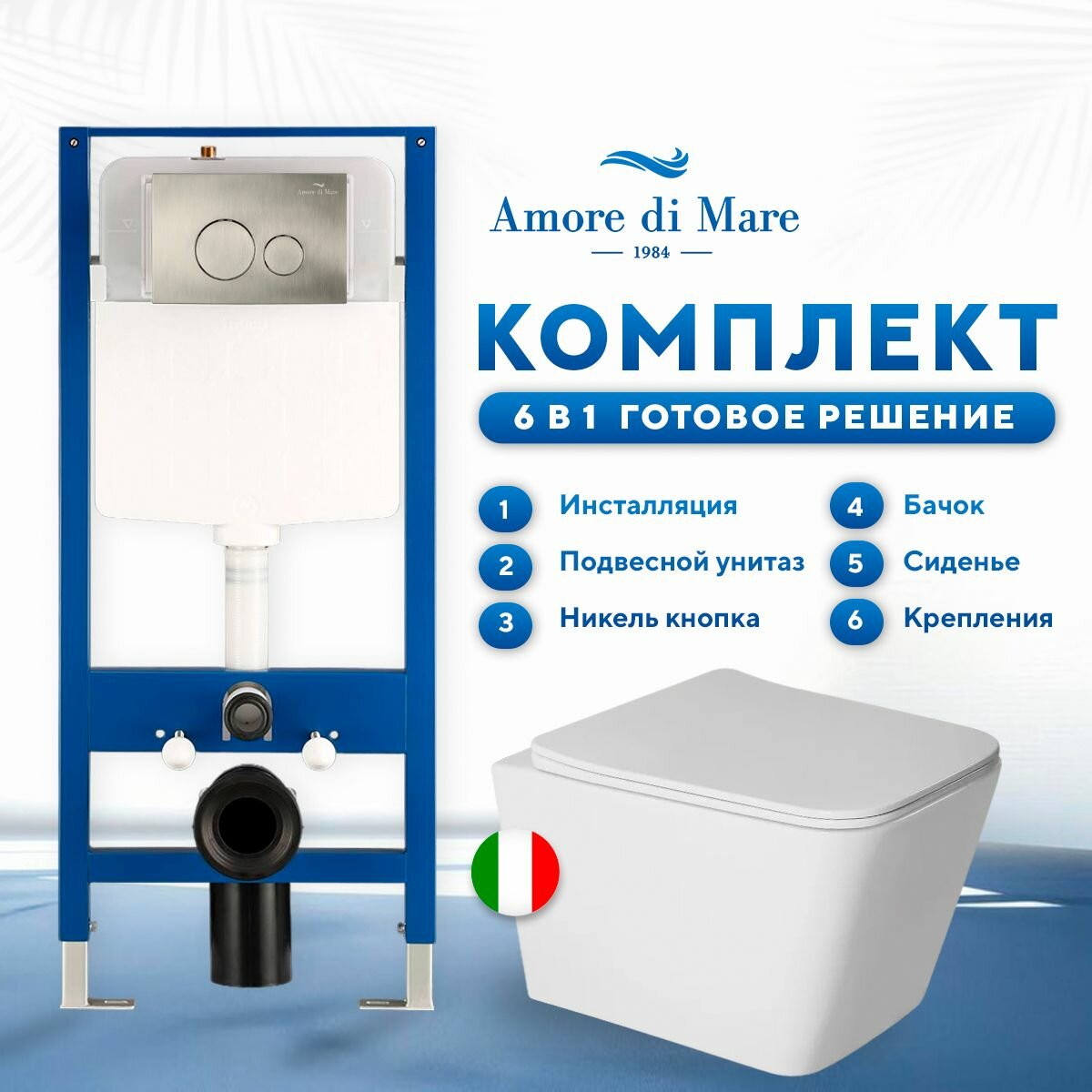 Комплект Amore di Mare 6 в 1 представляет собой полноценное и продуманное решение для установки современного подвесного унитаза, объединившего в себе итальянское качество, инновационные технологии и стильный дизайн. Этот набор включает все необходимые компоненты для быстрого и надежного монтажа, обеспечивая максимальное удобство как для профессионалов, так и для тех, кто самостоятельно занимается обустройством ванной комнаты.