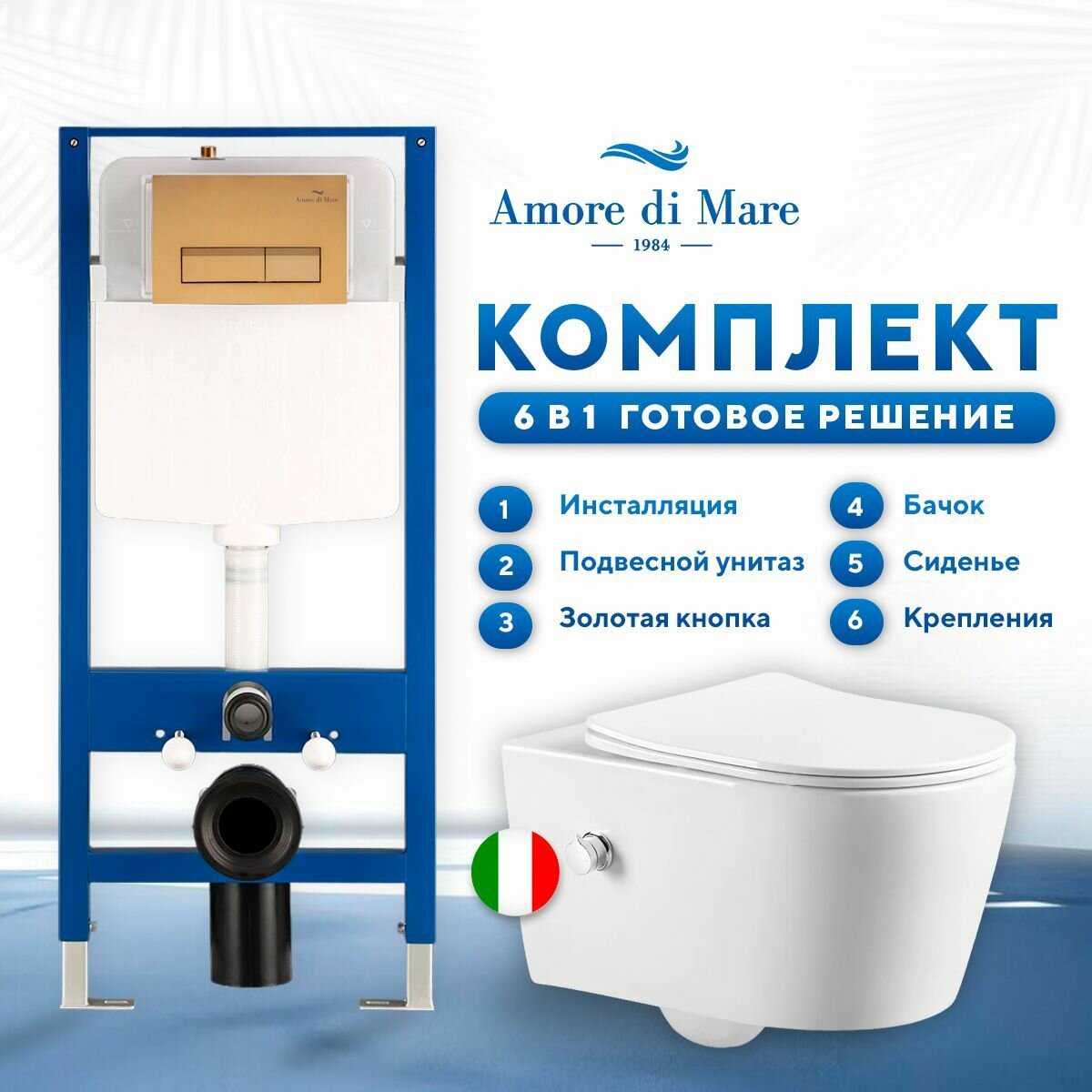 Инсталляция с подвесным унитазом Amore di Mare 6 в 1: инсталляция QuickFit 50114, унитаз Temo P322-X, сиденье с микролифтом, кнопка золото 404G: сравнение цен, характеристики, фото, актуальное наличие и цены.