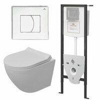 Купить Инсталляция с подвесным унитазом CULTO EIS. Комплект: подвесной безободковый унитаз, инсталляция, клавиша смыва белая с доставкой по всей России.