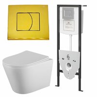 Купить Инсталляция с подвесным унитазом CULTO MONET. Комплект: подвесной унитаз, инсталляция, клавиша смыва золото глянец с доставкой по всей России.
