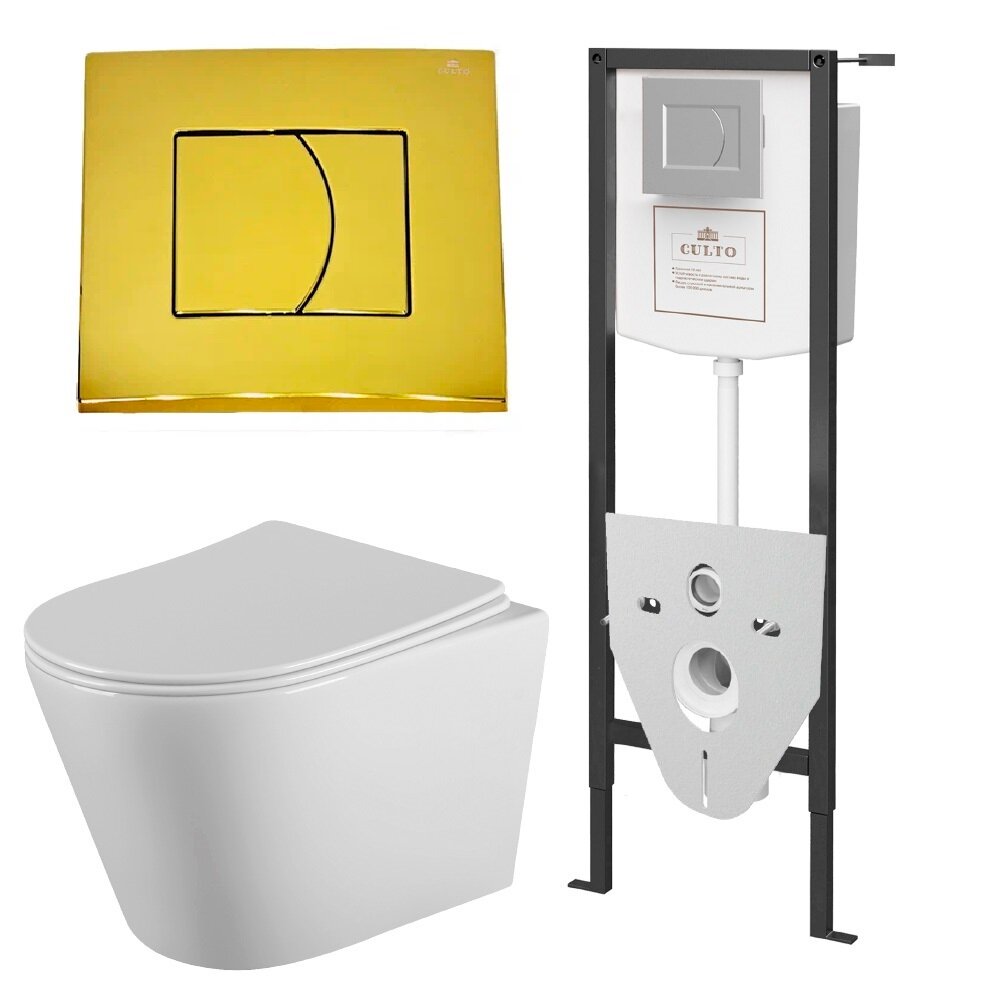 Инсталляция с подвесным унитазом CULTO MONET. Комплект: подвесной унитаз, инсталляция, клавиша смыва золото глянец: сравнение цен, характеристики, фото, актуальное наличие и цены.