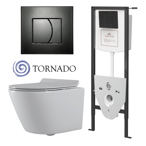 Купить Инсталляция с подвесным унитазом CULTO TOR V2.0. Панель смыва черная. Система смыва Торнадо с доставкой по всей России.