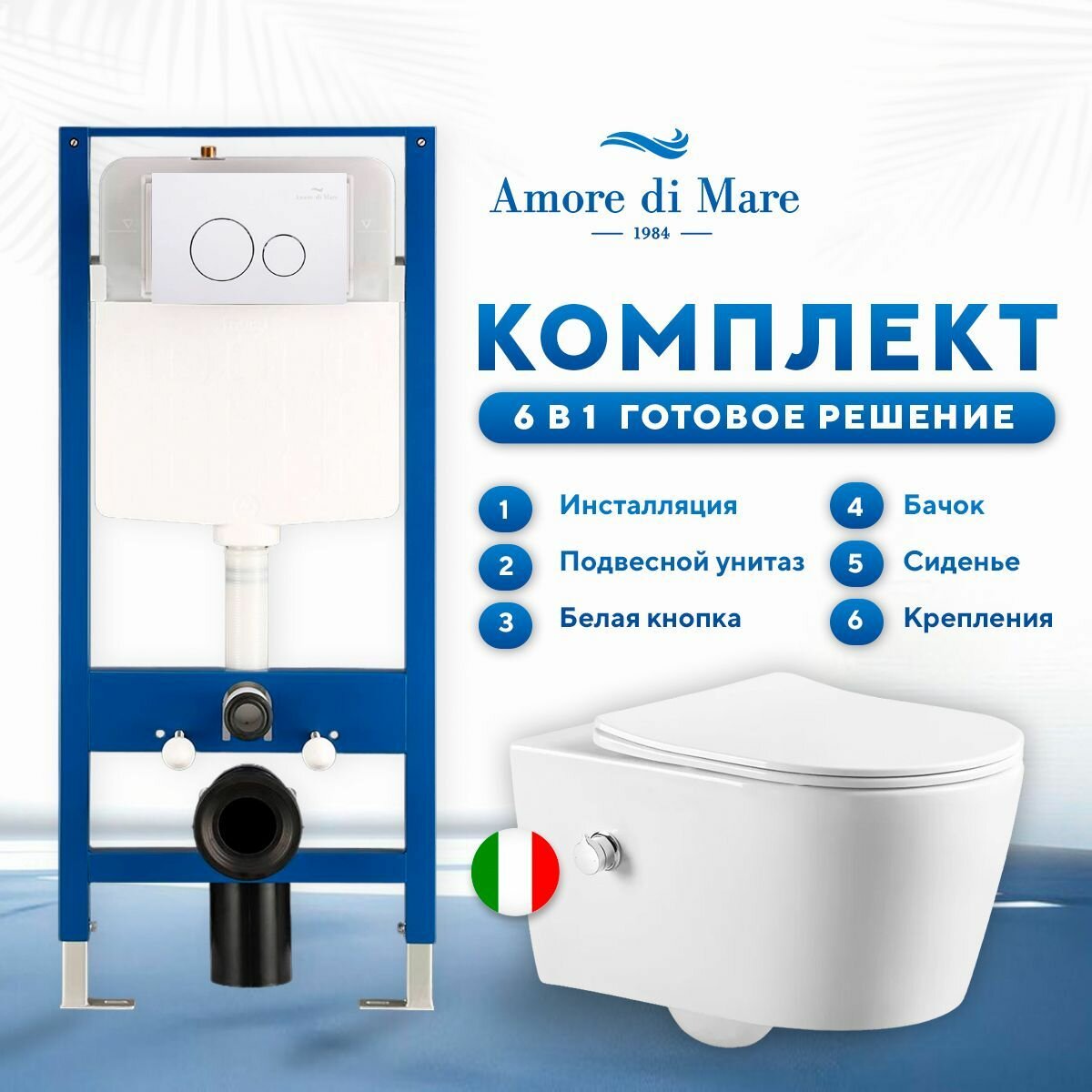 Купить Инсталляция с унитазомAmore di Mare 6 в 1: инсталляция QuickFit 50114, унитаз Temo Bidet P322-X, сиденье, кнопка 303W с доставкой по всей России.