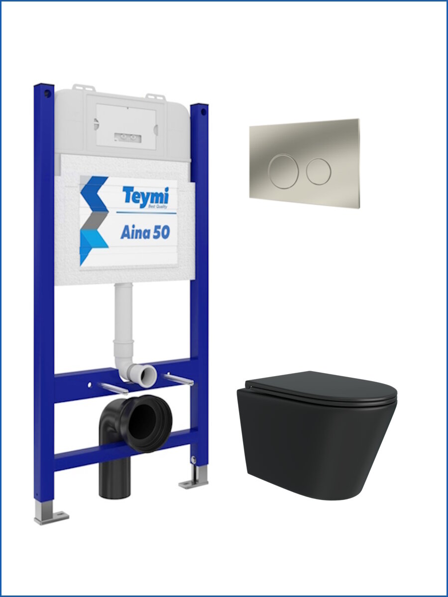 Купить Инсталляция с унитазом 5 в 1 Teymi унитаз подвесной безободковый черный Solli Black кнопка нержавеющая сталь F13528 с доставкой по всей России.